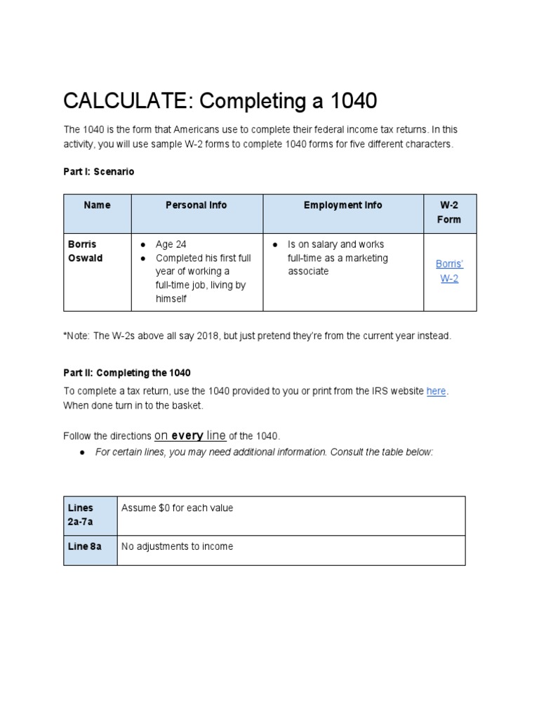 Calculate completing a 1040 answer key pdf calculate completing a 1040 answer key / module 4 assessment docx calculate completing a 1040 the 1040 is the form that americans use to complete their federal income tax returns in this course hero :